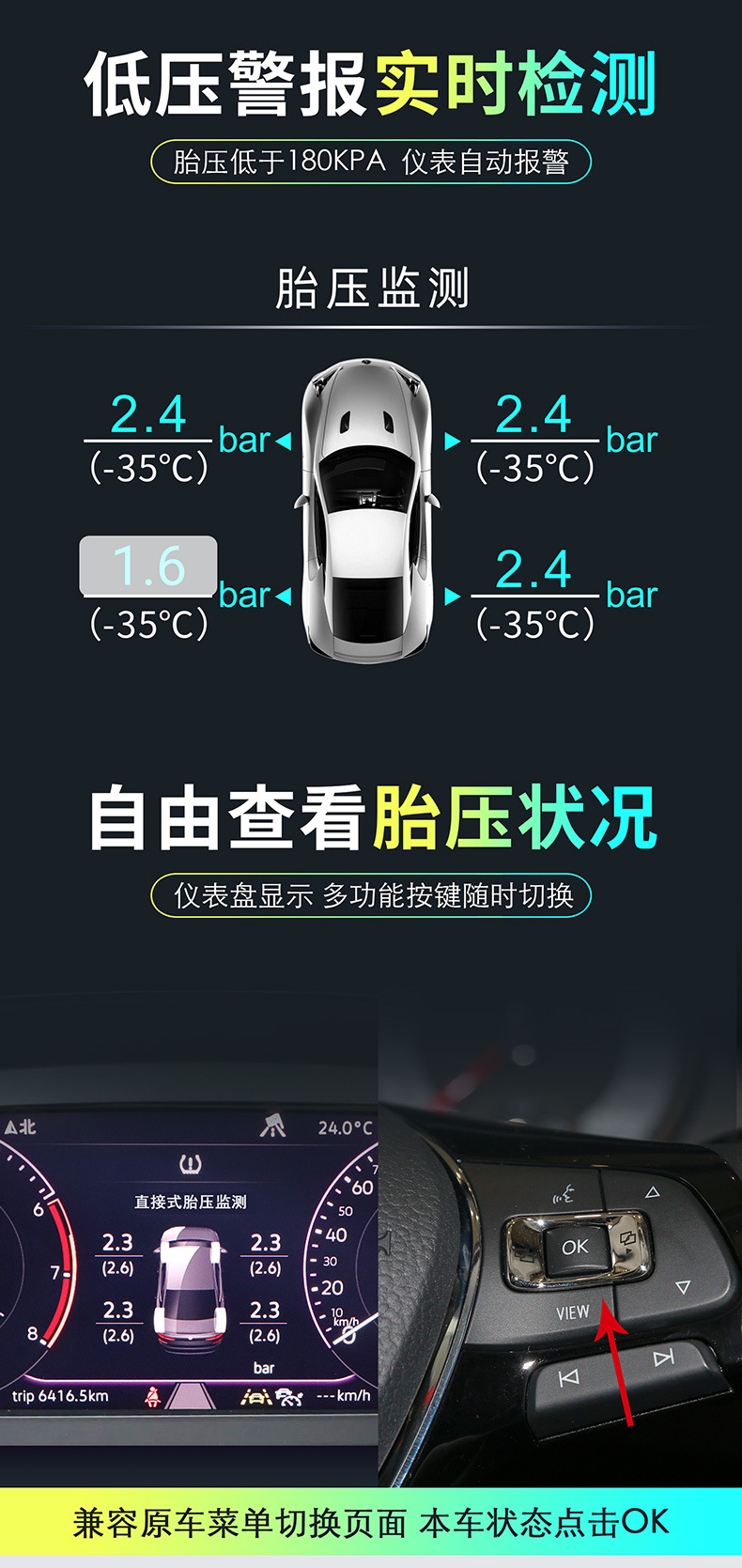 原車儀表胎壓監(jiān)測器無線汽車輪胎壓數(shù)顯胎壓適用于大眾