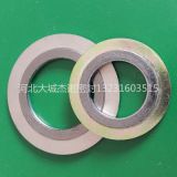 采用SUS304、SUS316(“V”形或“W”形) 金屬帶及其它合金材料與石墨、石棉、聚四氟乙烯、無(wú)石棉等軟性材料相互交替重迭螺旋纏繞而成,在開始及末端用點(diǎn)焊方式將金屬帶固定。為半金屬密合墊中回彈性好的墊片,墊片結(jié)構(gòu)密度可依據(jù)不同的鎖緊力要求來(lái)制作,并利用內(nèi)外鋼環(huán)來(lái)控制其較大壓緊度,纏繞墊片接觸的法蘭密封面的表面精度要求不高。