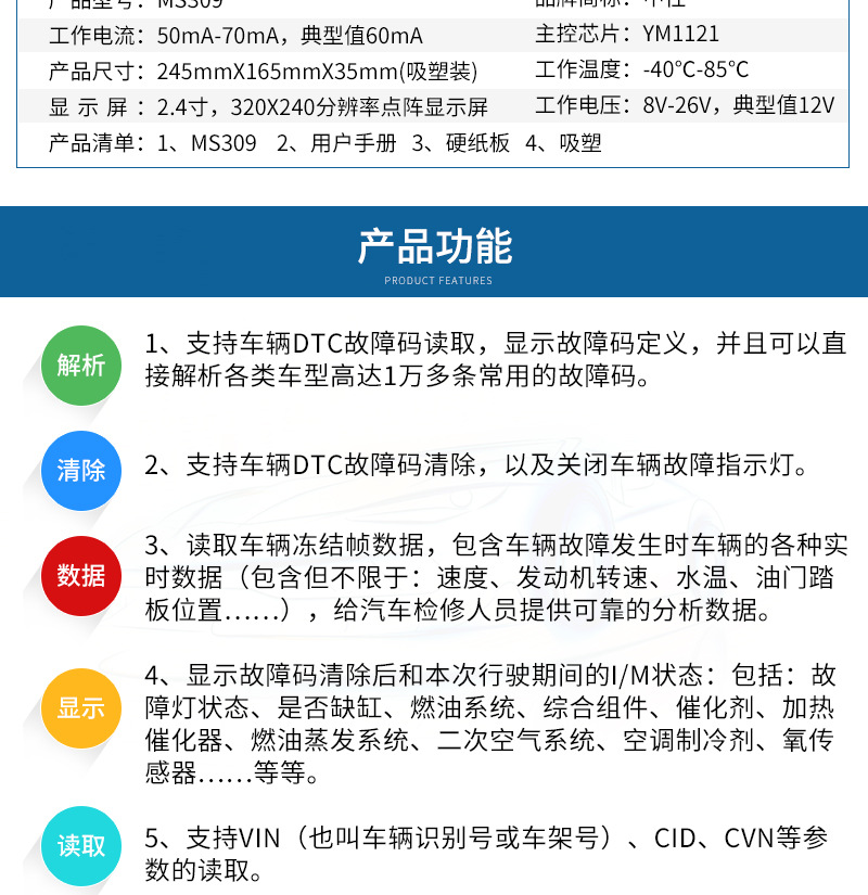 找工廠(YMIOT)汽車診斷儀MS309 方案開發(fā)定制fB02汽車檢測儀
