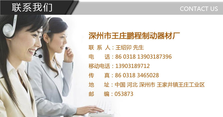 深州市鵬程制動器材廠創(chuàng)建于一九八零年,地處冀中平原、石德與京九鐵路交匯處,地理位置優(yōu)越,交通十分方便。建廠以來,全廠干部職工團結(jié)奮進,銳意進取,勇于開拓,使本企業(yè)在激烈的市場競爭中逐漸發(fā)展壯大,目前,本廠占地4500平方米,并擁有數(shù)控車床、沖剪、液壓等設備30余臺,固定資產(chǎn)達到達200萬元,本廠產(chǎn)品已注冊商標為松源牌。