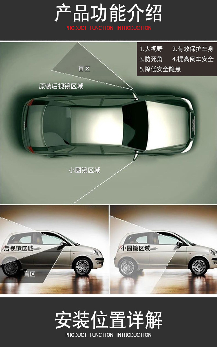 廠家批發(fā)汽車后視鏡小圓鏡倒車盲點鏡 盲區(qū)輔助后視玻璃小圓鏡子