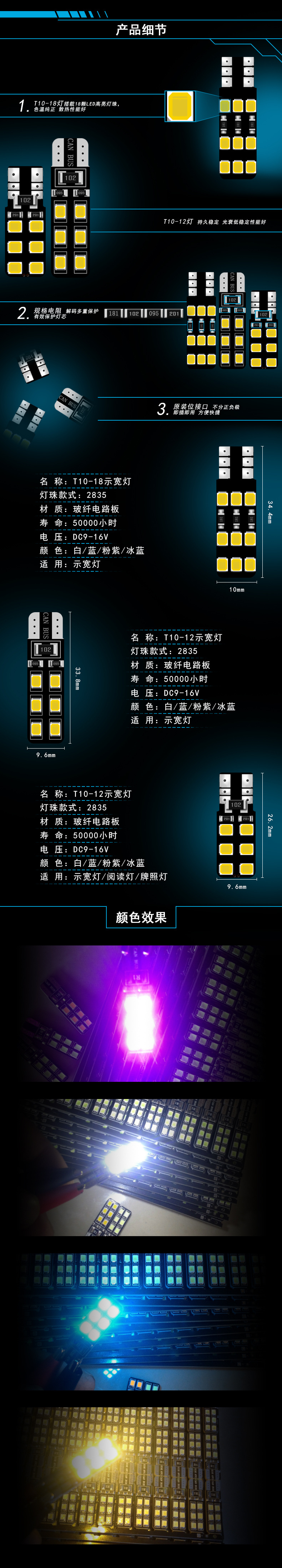 【產(chǎn)品名稱】: T10 12LED示寬燈