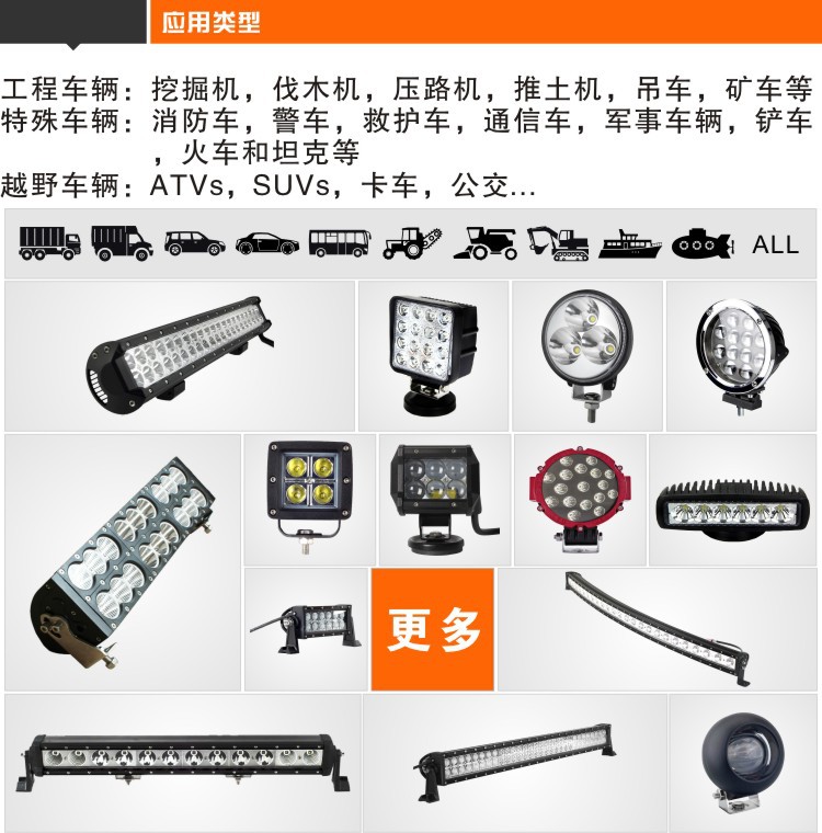 適用車型汽車燈、卡車燈、越野車燈、機(jī)械車燈、農(nóng)用機(jī)械、工程車燈、挖掘機(jī)車燈、鏟車燈、掃雪車燈、裝甲車燈等車用