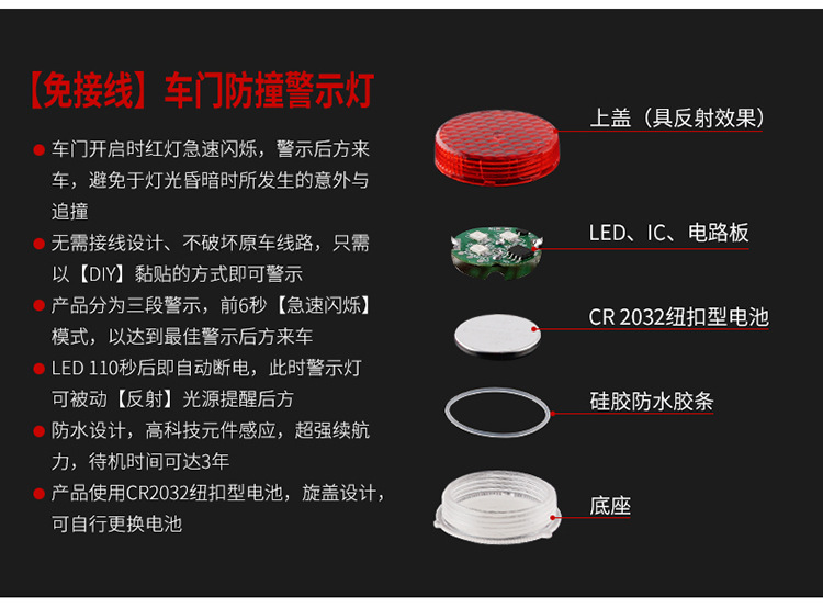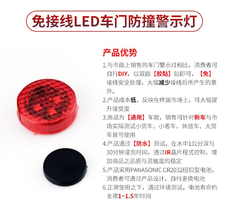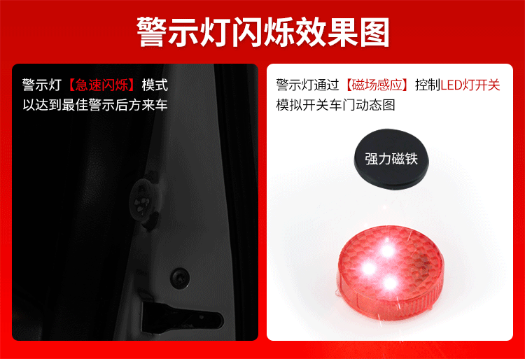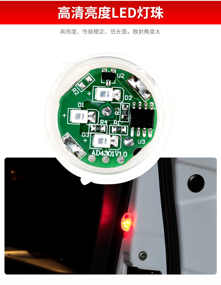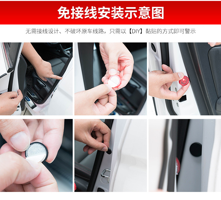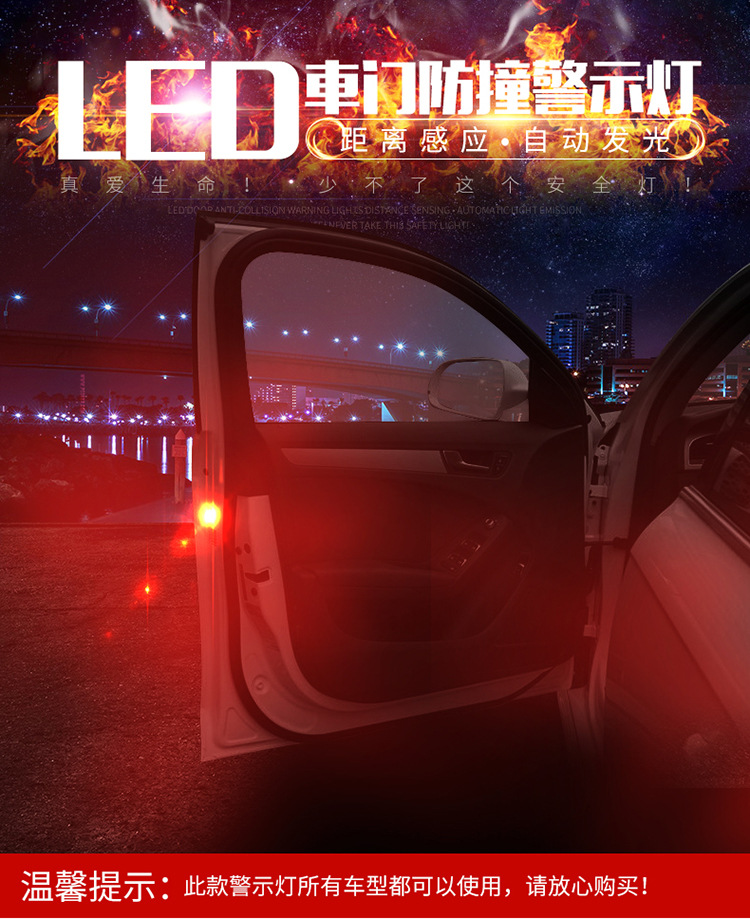 汽車門邊燈裝飾開門安全警示燈免接線LED爆閃防撞燈車門改裝燈