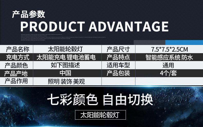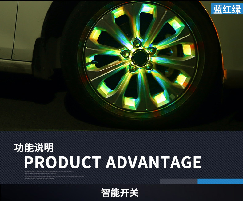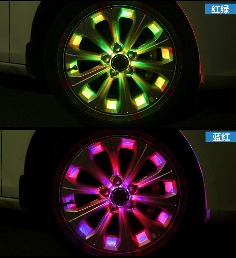 汽車輪胎燈裝飾燈七彩led爆閃燈太陽能輪轂燈跑馬燈風火輪改裝燈