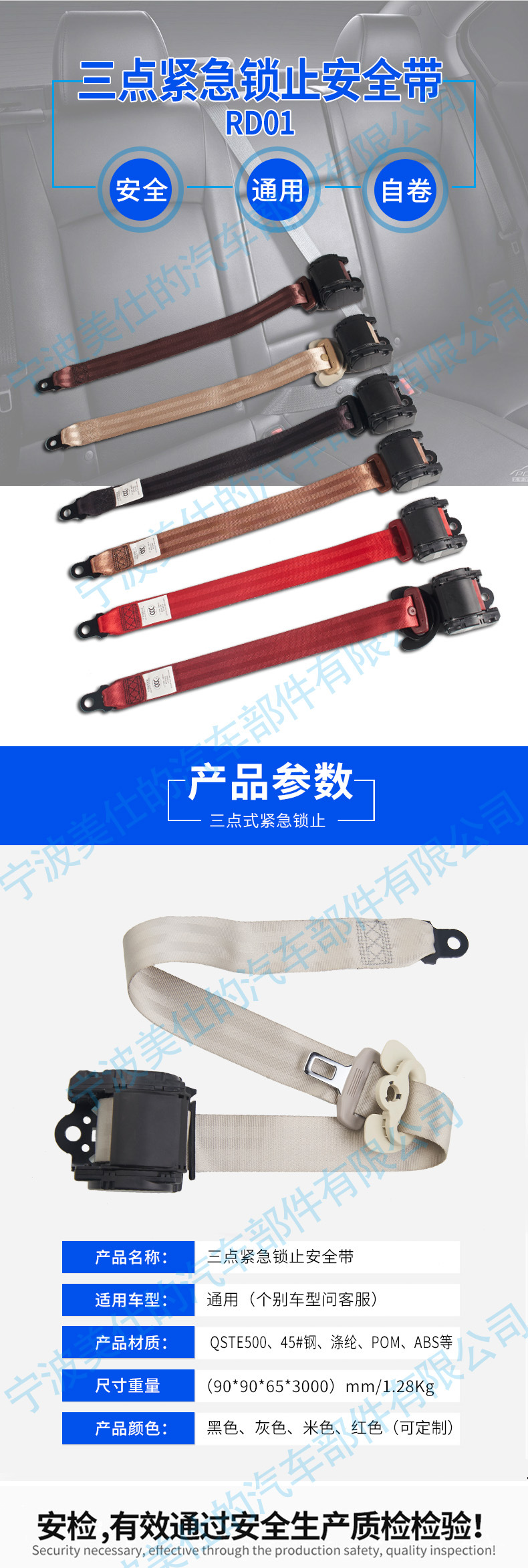 廠家供應E13緊急鎖止三點式汽車座椅安全帶 房車改裝車座椅安全帶