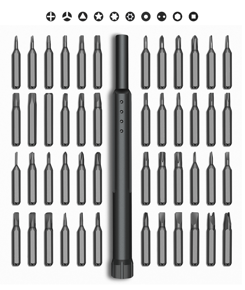 T: T2 T3 T4 TR5 TR6 TR7 TR8 TR9 TR10 TR15 TR20 Hex:H0.7 H0.9 H1.3 H1.5 H2.0 H2.5 H3.0 H3.5 H4.0 Slotted:SL1.0 SL1.5 SL2.0 SL2.5 SL3.0 SL3.5 SL4.0 Phillips:PH000 PH00 PH0 PH1 Pentalobe:☆0.8☆1.2☆1.5 Tri-wing:Y0.6 Y1 Y2.0 Y2.5 Triangle:△2.0△2.3△3.0 Square :S0 S1 S2 U Type:U2.6 U3.0 Thimble:0.8 Midplate:2.5 手柄*1 |
