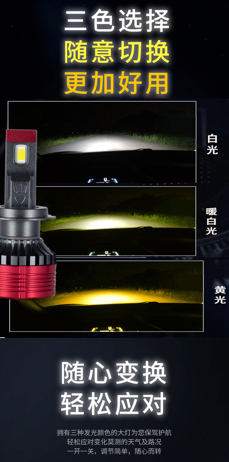 5. 色溫(顏色):6000K(白光);3000K(黃光);4300K(黃白光);三種顏色,任意切換