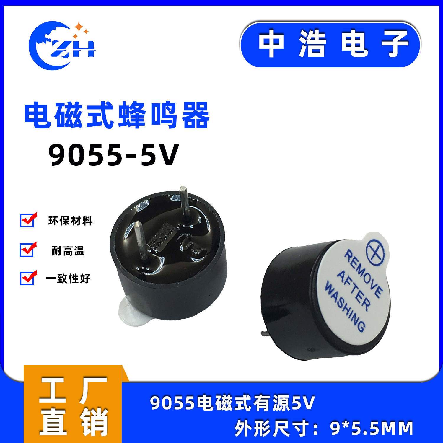 一體9055電磁式有源蜂鳴器5v 中浩電子耐高溫9*5.5mm環(huán)保材質(zhì)