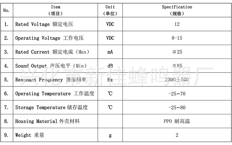 機(jī)械式(1) 咪頭(10) 電磁式蜂鳴器(26)> 壓電式蜂鳴器(42)> 貼片式蜂鳴器(11)> 報(bào)警器(4)> 揚(yáng)聲器(喇叭)(23)