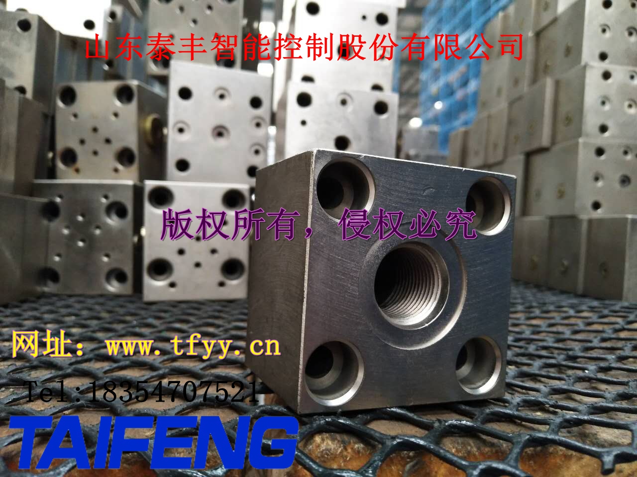 3、既可以選擇安裝符合ISO4401--03/05的通用板式連接的電磁換向閥和疊加閥的蓋板,也可以選擇帶螺紋插裝閥的蓋板