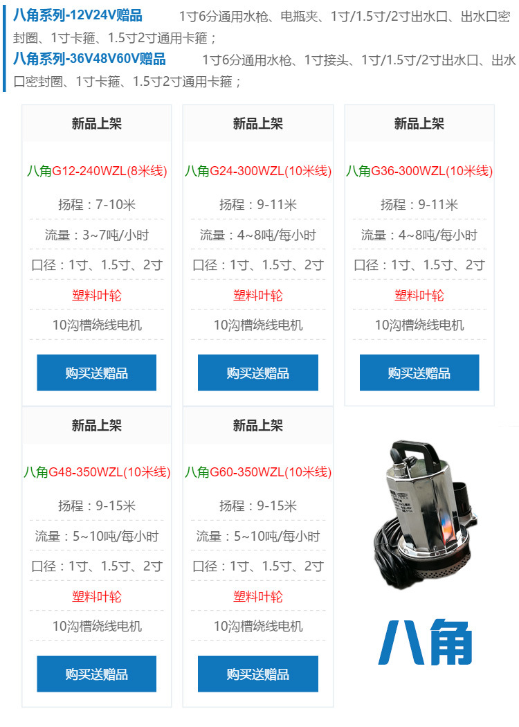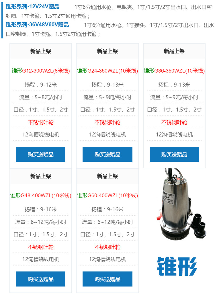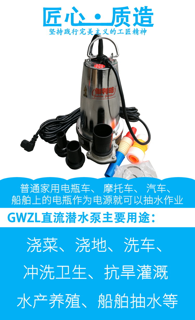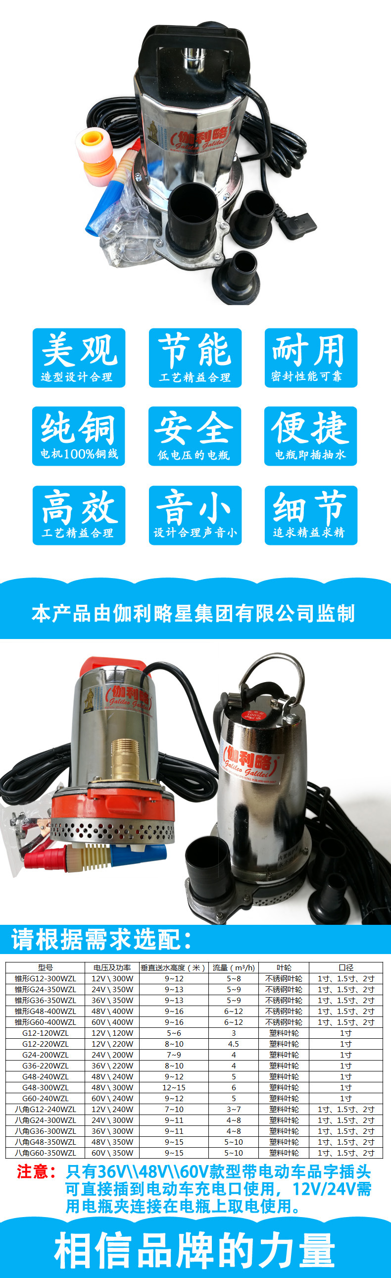 4、伽利略galileo直流水泵,質(zhì)量很穩(wěn)定的,產(chǎn)品的材料和功率都是按標準生產(chǎn)的;因為我們這種是屬于電瓶水泵,功耗是很重要的;并不是功率越大越好的!大功率誰都能生產(chǎn)的,但是電瓶車電瓶的價格比水泵價格高多了;不是標準電流的大功率,會嚴重傷電瓶的使用壽命。