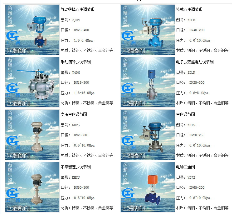 閥體型式 :角型鑄造球體式(標(biāo)準(zhǔn)型) 三通、直通、多通等(變型產(chǎn)品) 閥內(nèi)組件 執(zhí)行機(jī)構(gòu)型式:多彈簧式膜片執(zhí)行機(jī)構(gòu) 附件:閥門定位器、手輪機(jī)構(gòu)、空氣過濾減壓閥、行程開關(guān)、閥位傳送器等。