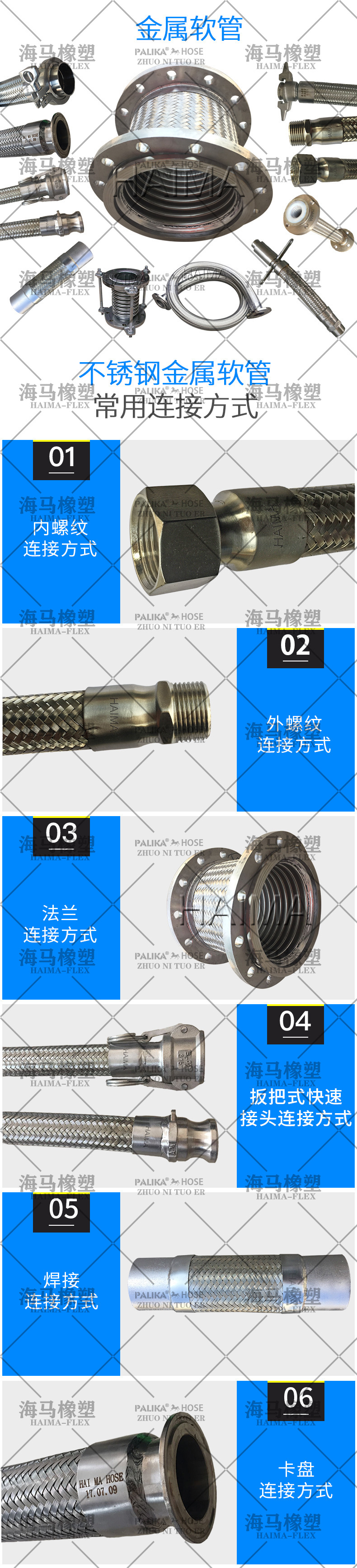 產(chǎn)品長(zhǎng)度:200mm - 5000mm衡水海馬橡塑有限公司 螺紋連接金屬軟管